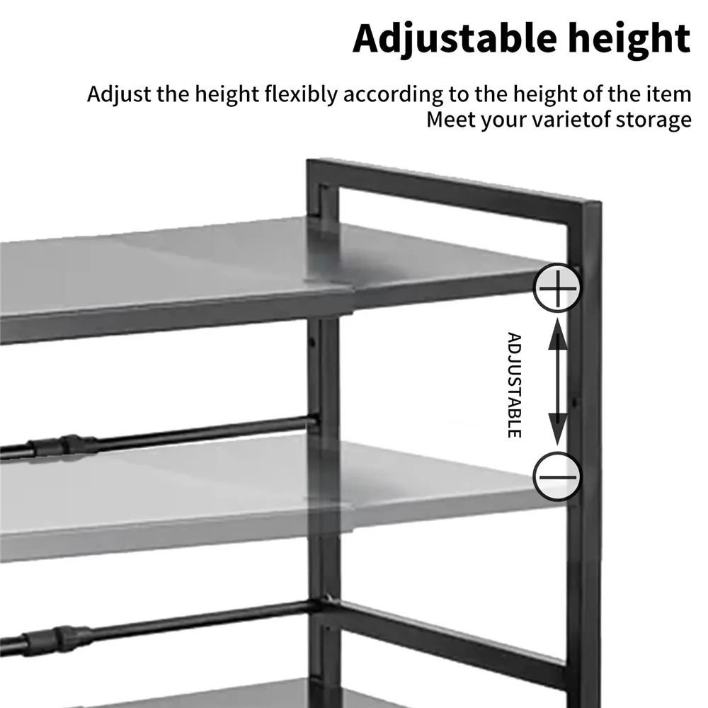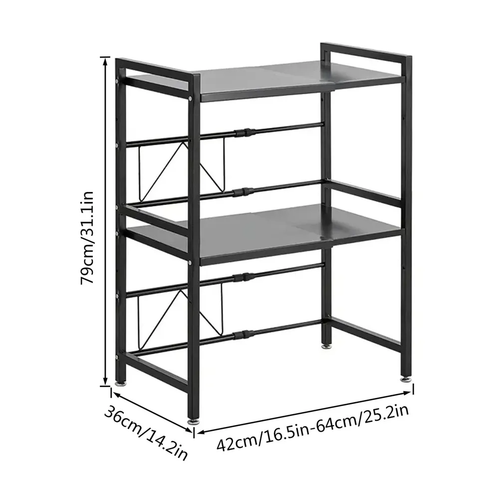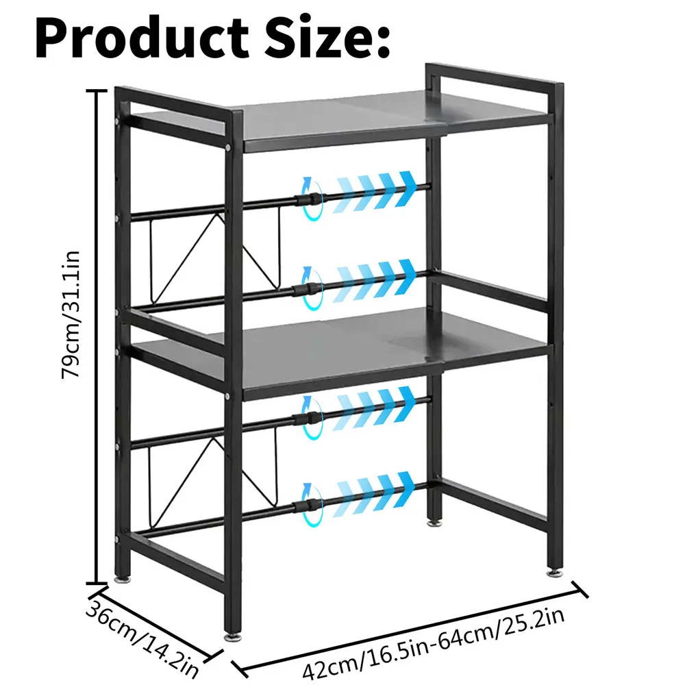 Expandable design: the length and height of the kitchen microwave shelf can be expanded, the length range is 42-64 cm, You can adjust the length of the shelf and the height of the top and bottom shelves according to your needs