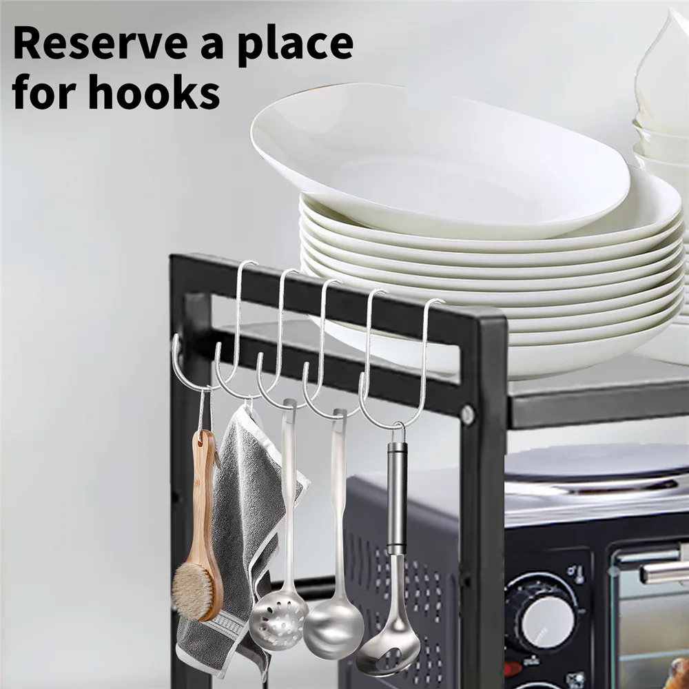 Use in multiple scenarios: the simple and elegant appearance is suitable for almost any scene. The kitchen can be equipped with a microwave and an oven. Bread Machine Coffee machine, etc. In the study and office, it can be equipped with printers, fax machines, books, etc. The rack is also equipped with 6 removable and removable hooks for storing oven gloves, kitchen utensils or other small items.