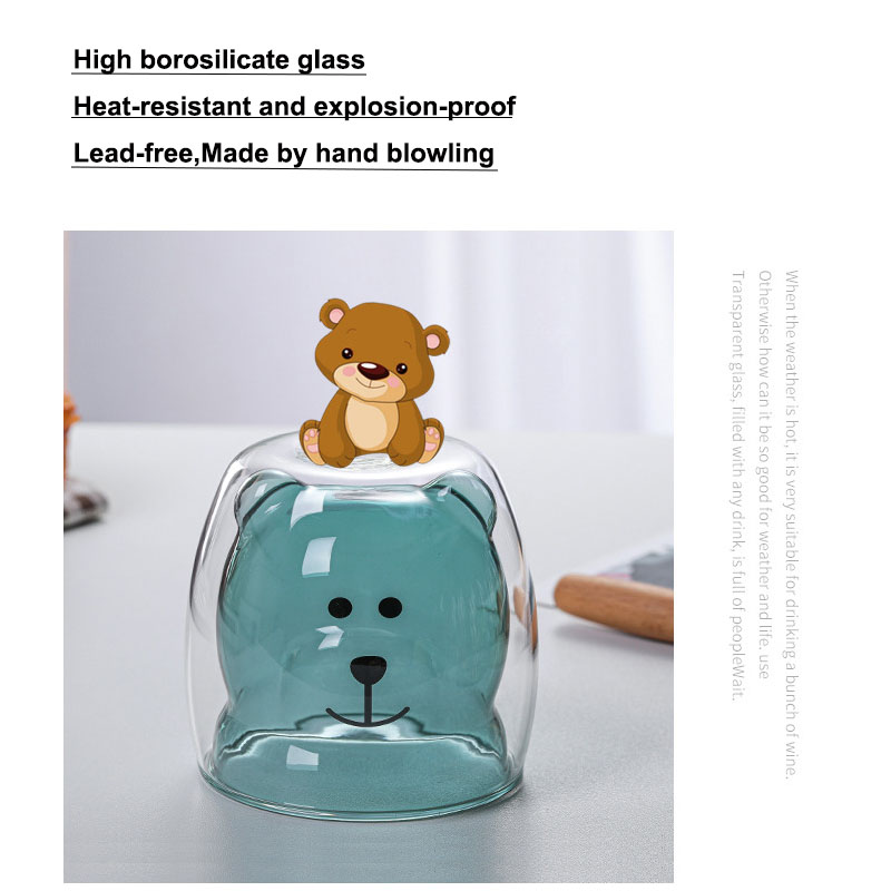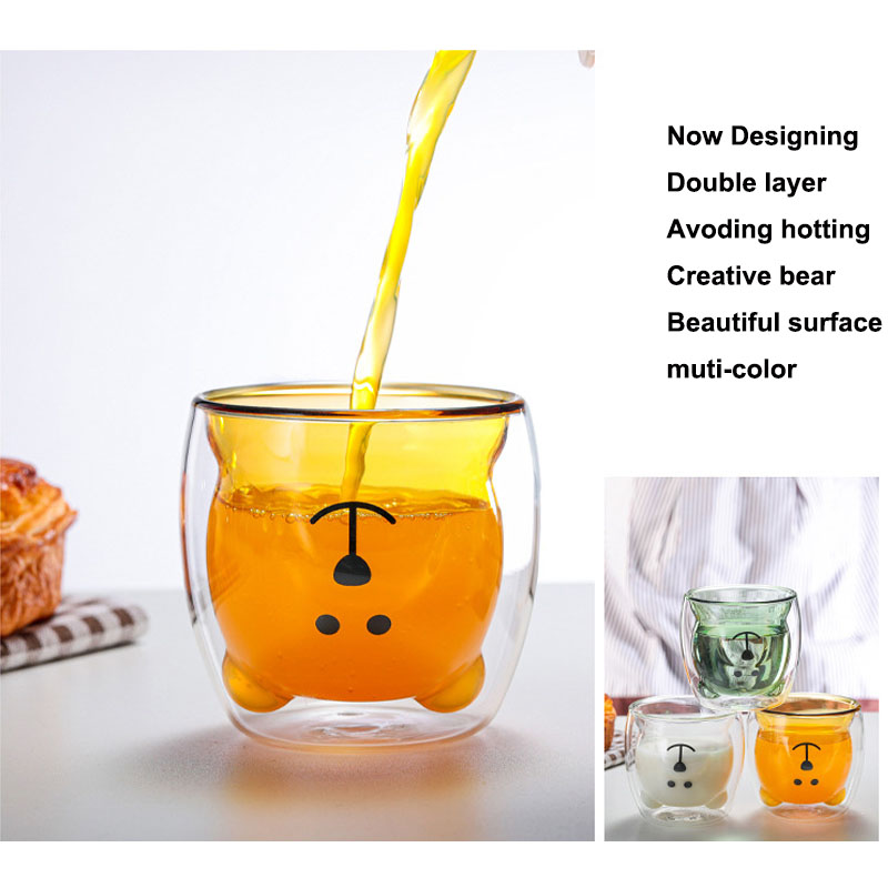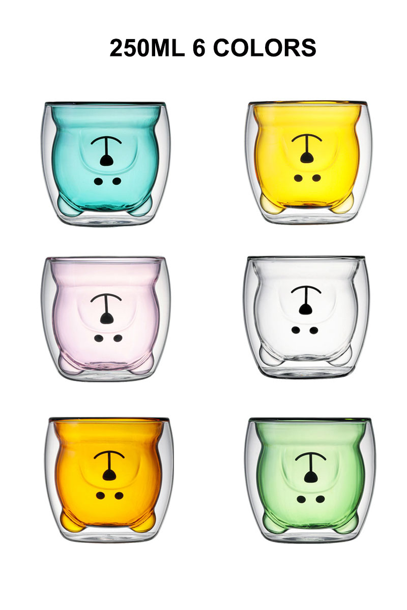 Tazas de vidrio de doble capa con diseño de oso lindo, vaso de vidrio de pared de 250ml, leche, café, té, jugo, regalo de aniversario del Día de San Valentín, envío directo